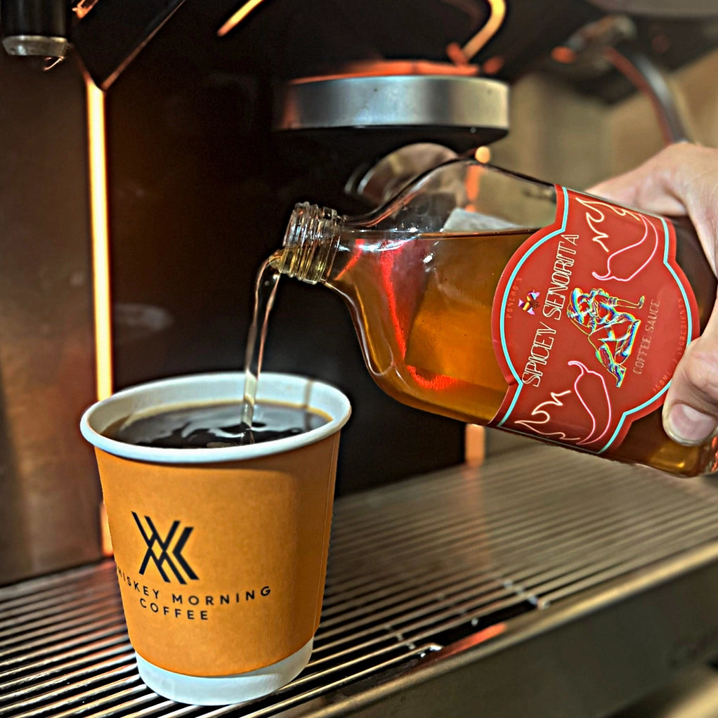 Start your day with a kick from a splash of Spicy Señorita Coffee Sauce!